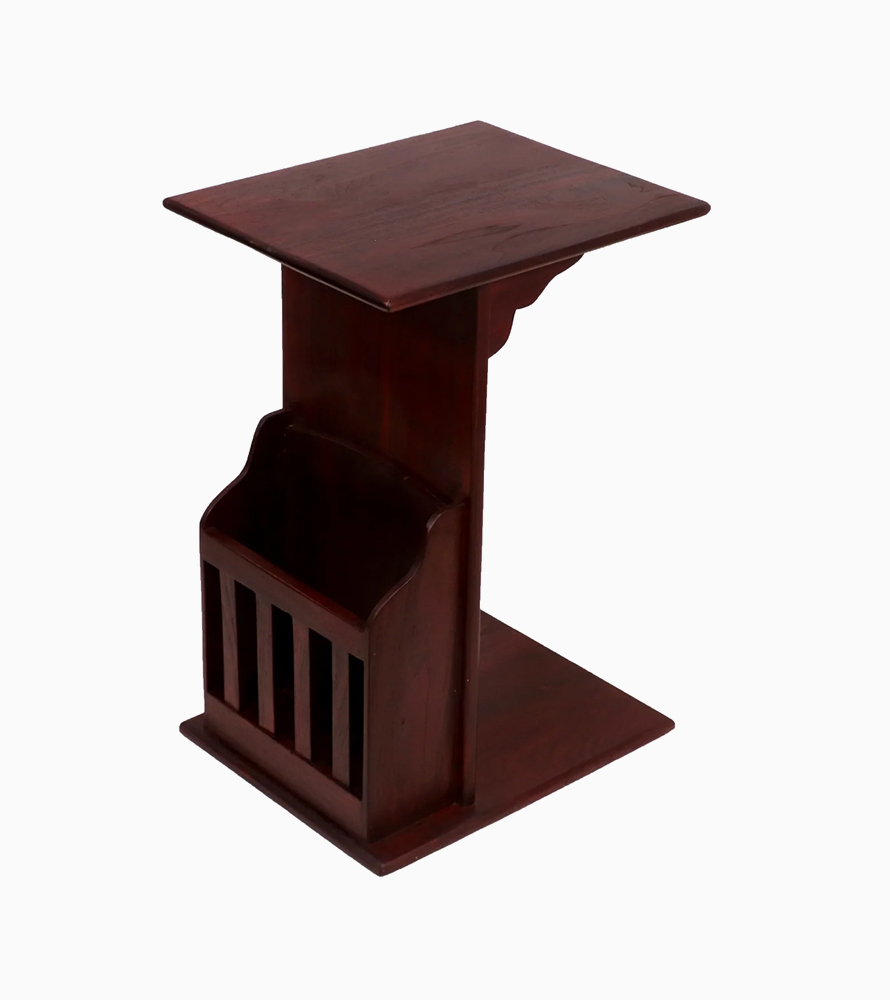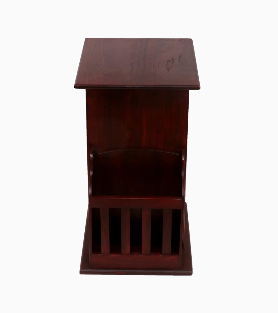 wooden stool with magazine and pot holder