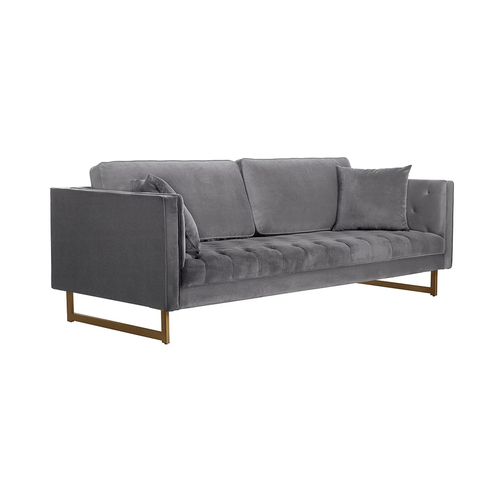 Modern Velvet Metal Wood Sofa in Gray