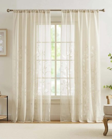 Lace sheer rod pocket curtain